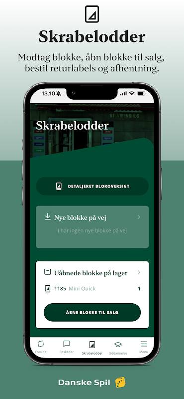 Nhận và mở các khối để bán với Danske Spil Forhandlerapp, do đó bạn không cần phải đứng ở Terminal.