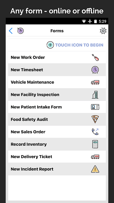 Thay thế biểu mẫu giấy bằng máy tính bảng và điện thoại bằng đám mây di động Forms On Fire. Bạn có thể tùy chỉnh các biểu mẫu của riêng bạn để thu thập dữ liệu ngoại tuyến, quy trình làm việc và phân tích. Nền tảng này đáng tin cậy, an toàn và dễ dàng để đi.