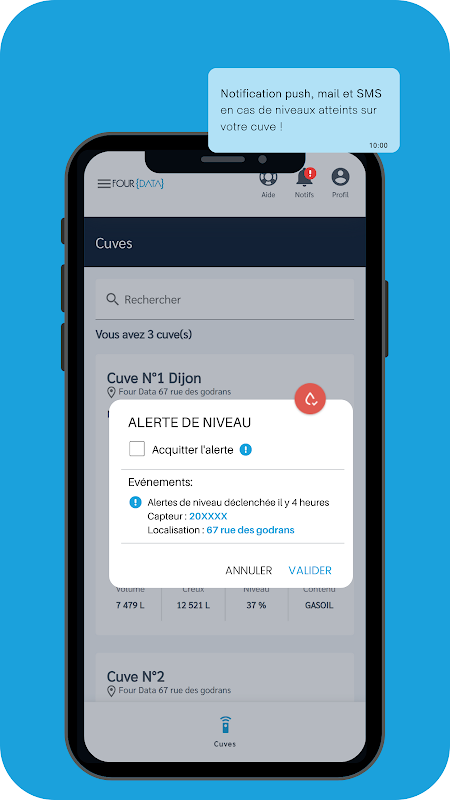 Do đó, hệ thống của chúng tôi cho phép bạn dễ dàng xem các điểm lưu trữ hoặc thiết bị của mình từ xa và do đó tránh được sự cố, tràn, trộm cắp hoặc sự cố kỹ thuật, v.v.!