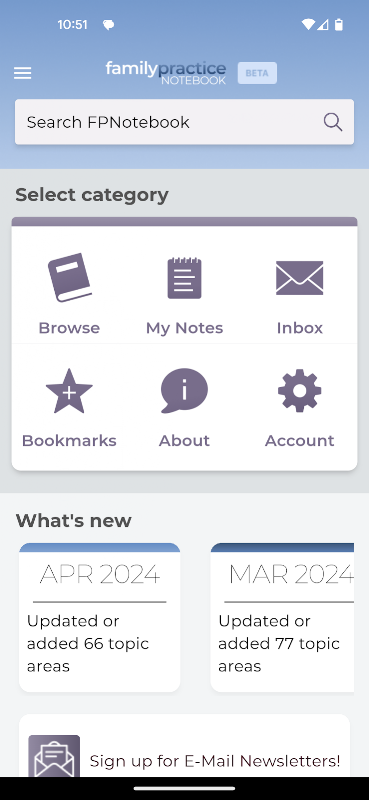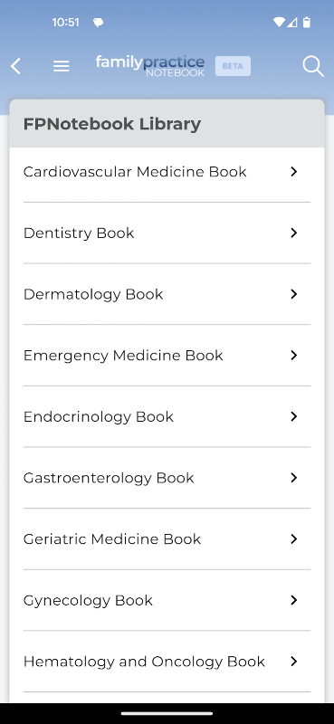 Ứng dụng sổ ghi chép Family Practice là một tài liệu tham khảo y tế tại điểm chăm sóc nhanh chóng dành cho các bác sĩ lâm sàng cấp cứu và chăm sóc ban đầu. Bắt đầu vào năm 1995, bộ sưu tập này hiện có hơn 6300 trang chủ đề liên kết với nhau được chia thành một cây gồm 31 cuốn sách chuyên ngành và hơn 700 chương tài liệu tham khảo y tế.