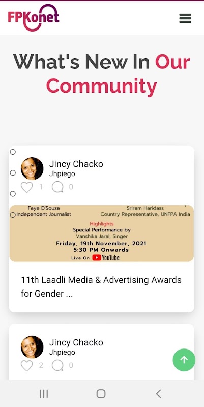 Cập nhật thông tin về tất cả các diễn biến trên phạm vi rộng lớn của kế hoạch hóa gia đình, sức khỏe kinh nguyệt, bạo lực trên cơ sở giới (BLG) ở Ấn Độ. FPKonet là một kho tài nguyên tổng thể cung cấp các sản phẩm kiến thức cập nhật về các hướng dẫn khác nhau, bao hàm tiếng nói từ thực địa, chia sẻ các đổi mới và bằng chứng mới nổi, và tất cả những thứ có thể nhân rộng cho các tổ chức cơ sở và nhà tài trợ của Ấn Độ để thi đua và thực hiện từ kinh nghiệm của các tổ chức đồng cấp.