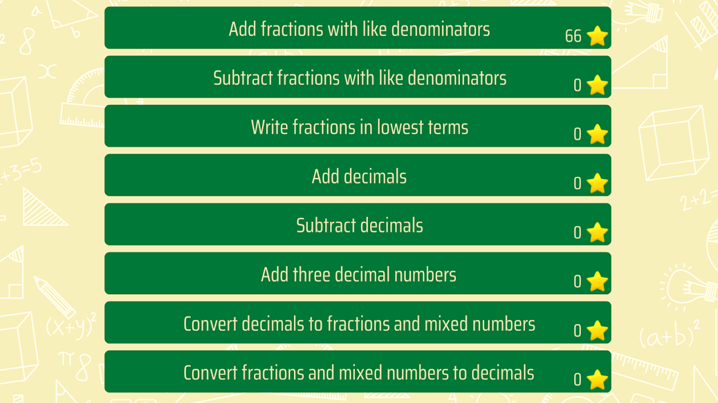 Với các kỹ năng toán lớp ba - Phân số và số thập phân bạn có thể thực hành và cải thiện các kỹ năng toán học sau: