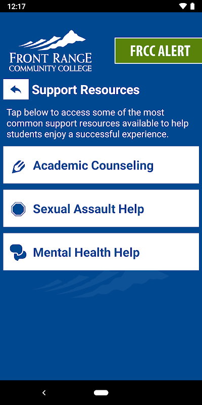 - Tài nguyên hỗ trợ: Truy cập tài nguyên hỗ trợ trong một ứng dụng tiện lợi để tận hưởng trải nghiệm thành công tại FRCC.