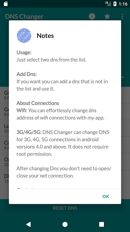 Thay đổi DNS mà không ROOT.Works hoàn hảo trong cả dữ liệu mạng (2G / 3G / 4G) và WiFi