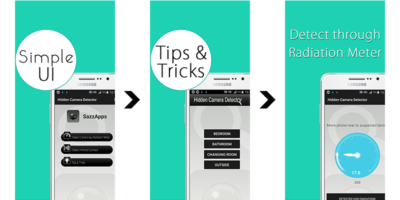 The app use magnetic sensors to detect spy cams and devices its detect the radiation which emits from the devices when it detect the radiation of such devices it will start beef sound and also increase the value of radiation meter.