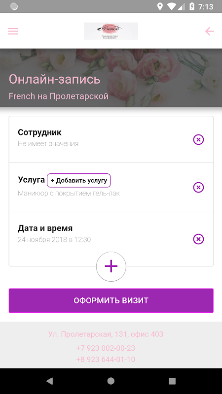 Мобильное приложение Маникюрной студии FRENCH в Барнауле.