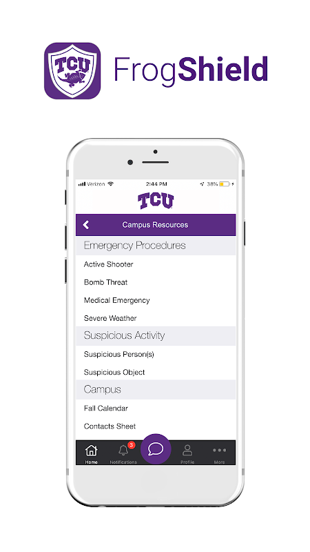 Chào mừng đến với FrogShield! Các ứng dụng được cung cấp bởi cảnh sát TCU để giúp tiếp tục đảm bảo rằng bạn đang có một kinh nghiệm khuôn viên trường an toàn và thú vị. Sử dụng ứng dụng để gửi mẹo, liên hệ với cảnh sát và cho phép bạn bè chăm sóc bạn.