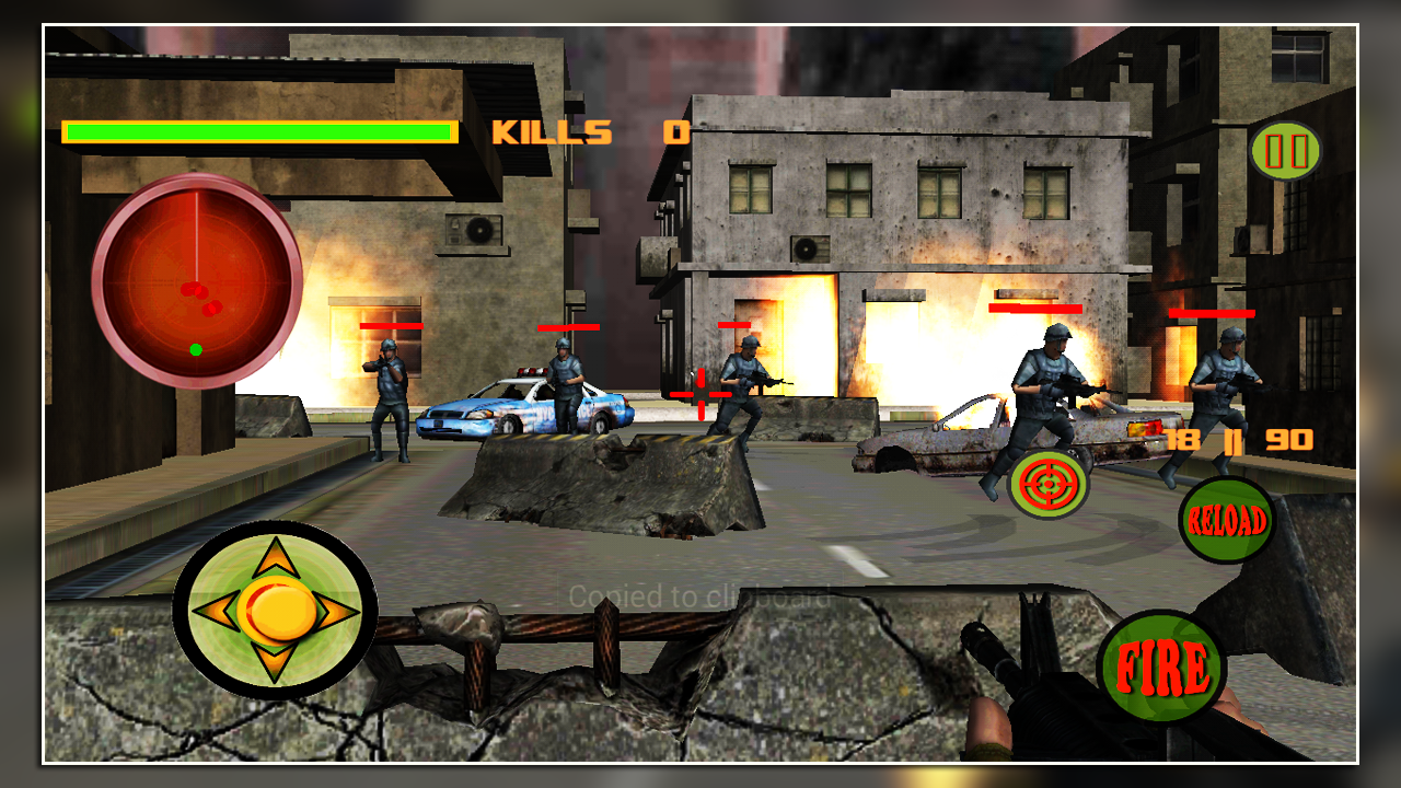 Frontline Commando Battle will give you the best sniper shooting experience in a war and battle world with realistic 3d sniper. Be the best shooter & soldier of your army & military and don't allow the enemy to invade your territory.In this shooting game there is many terrorist with heavy weapons like AK-47, sniper, rifles, shot guns and they destroyed the peace and prosperity of modern city. Also they defeat police and explode their cars. Now fight, shoot and kill the enemy terrorist as they assault in your city town to clash the civilization. The last hope of surviving against the enemy, you must use all your tricks and skills defending your military base training of modern army sniper.