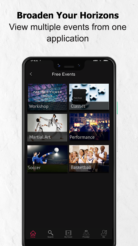Share your favorite event or provider account through Facebook, Twitter, Google+..