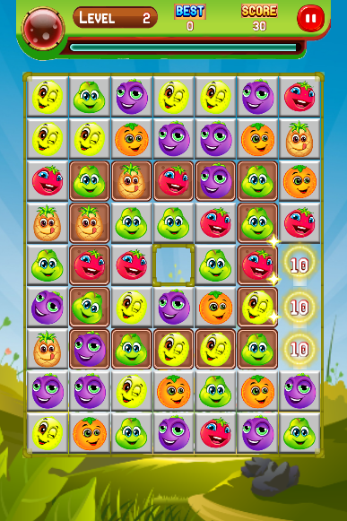 Nhận điểm bằng cách xóa trái cây. Bạn có thể làm cho chuỗi dài của trái cây để có được nhiều điểm hơn!
