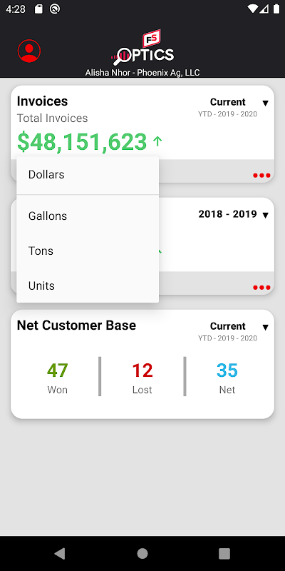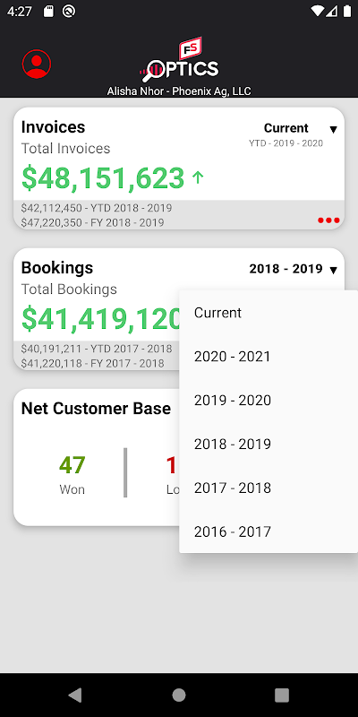 FS Optics Mobile Application is a data visualization tool that provides salespeople information regarding their total sales, bookings and customer base.