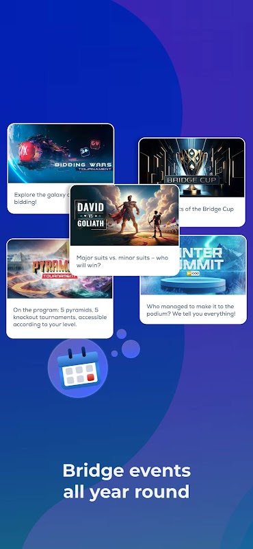 • Giải đấu hàng ngày: đối đầu với những người chơi bridge từ khắp nơi trên thế giới.