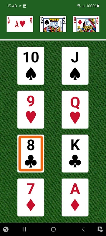 1. Bạn có thể tát một lá bài nếu có một lá bài như vậy trong số ba lá bài trên màn hình. Đây là một sự kết hợp hoàn chỉnh.