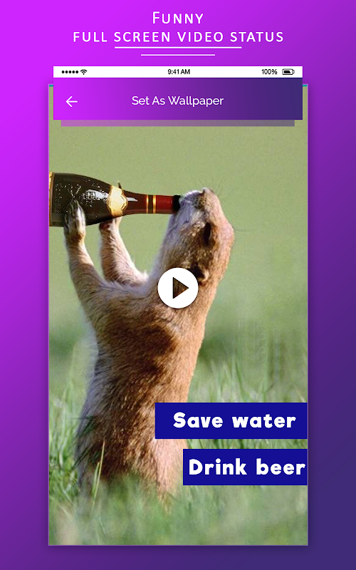 Funny Screen Video Status with share full screen video status and dp on social websites with just one click. this have all best option to use this application like....