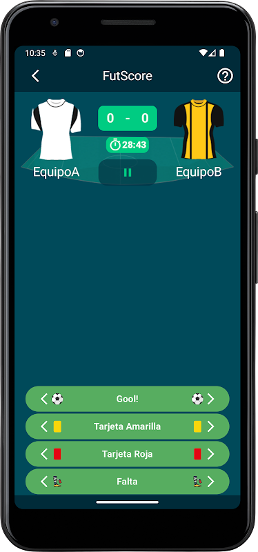 Với FutScore, bạn có thể theo dõi các trận đấu bóng đá của mình một cách nhanh chóng và dễ dàng. Ghi lại bàn thắng, thẻ phạt, thay người và các hành động khác theo thời gian thực, đồng thời xem lịch sử các thống kê quan trọng nhất cho mỗi trận đấu.