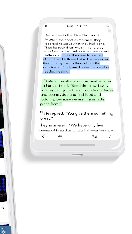 * Free Audio Bible: Click listen and you are instantly listening to the daily devotional plan. You can also look up any passage you want, the listen tab is in the bottom right hand corner at all times.