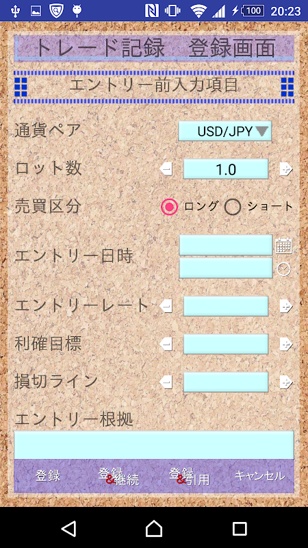 FXトレード(外国為替証拠金取引)を記録、メモし、収支管理、自己分析するアプリです。