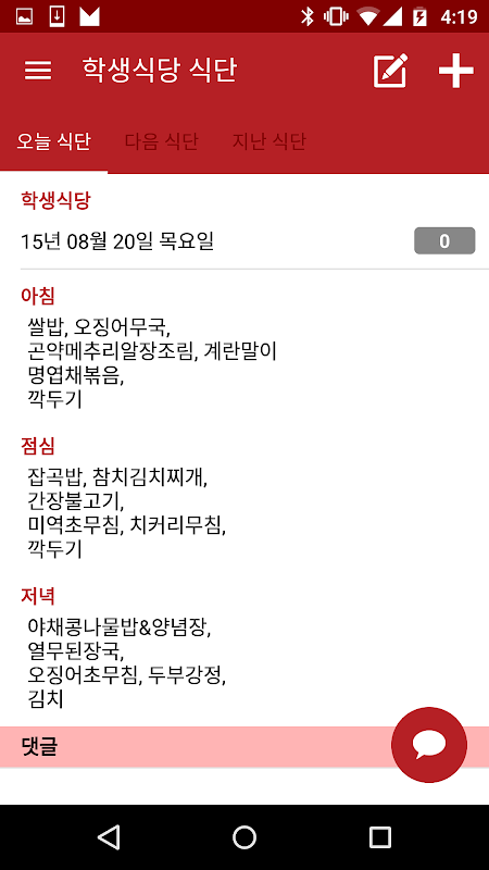 * 학생식당 식단은 중앙운영위원회와 학생식당이 함께 관리합니다.