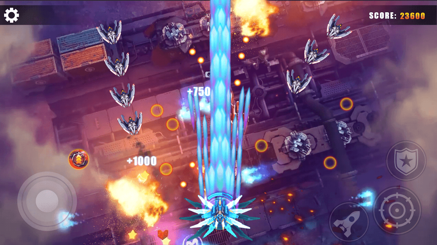 10 Thunder fighters are waiting for you to drive. Not all fighters can drive at begining. Some powerful fighters need you to reach a certain level before they can be unlocked. Unlocked fighters can be used randomly in the game. You can also upgrade these fighters to increase their firepower and levels, and easily breakthrough the alien shooters;