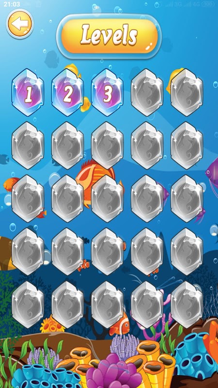 Anda bisa melihat gambar dan di sini juga suara vokal. Anda mempelajari hewan laut dan dalam 2 mode ini. Satu untuk mode pembelajaran dan satu untuk teka-teki. Dalam mode puzzle 30 level mudah ke sulit.