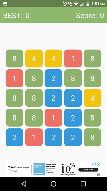 #2.Power of 2 : Slide same numbers together to add them. New numbers then drops down to fill the board. Play until no more moves.