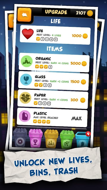 Endless streams of organic, plastic, glass, paper and metal trash require urgent recycling. But avoid the batteries. Failure to properly dispose of hazardous waste will have deadly consequences. Sort out the garbage, protect the environment, get higher scores to unlock new items, bins and more lives.