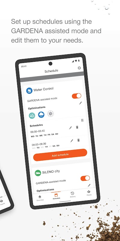 Ứng dụng sẽ hướng dẫn bạn thiết lập máy cắt cỏ tự động hoặc hệ thống tưới tiêu và giúp bạn lập lịch trình tối ưu.