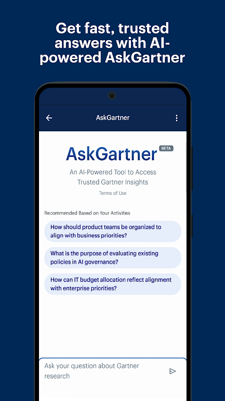 Gartner cung cấp thông tin chi tiết khách quan, hữu ích cho các nhà điều hành và nhóm của họ. Với Gartner Mobile, bạn có thể truy cập các công cụ và hướng dẫn chuyên môn của chúng tôi mọi lúc mọi nơi.