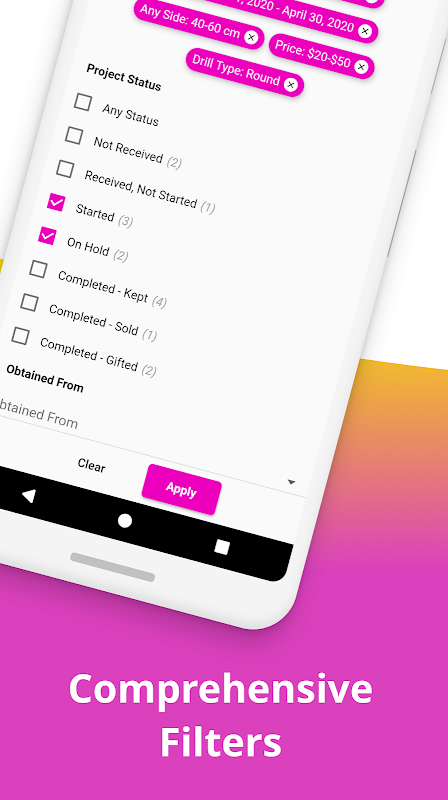 GemsFlow là về tất cả các bức tranh kim cương của bạn ở một nơi. Theo dõi các kiệt tác của bạn - xem nhanh những bức tranh bạn có trong tay, bức tranh nào đã đến, và bức nào bạn đang làm.