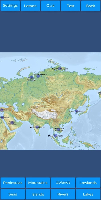 Ứng dụng GeoMaster cho phép bạn dễ dàng tiếp thu kiến thức địa lý trong lĩnh vực bản đồ vật lý và chính trị của thế giới: biển, sông, hồ, đảo, bán đảo, núi, cao nguyên, đồng bằng, quốc gia và thủ đô. Chế độ học tập, các câu đố và bài kiểm tra khác nhau.