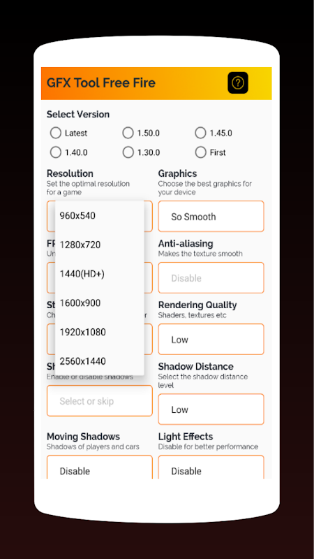 Phiên bản cũ của Gfx Tool For Free Fire Sensiti