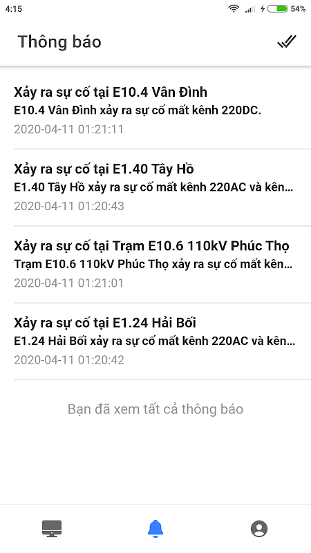 Ứng dụng giám sát và nhận thông báo sự cố trạm biến áp. Các tính năng chính: