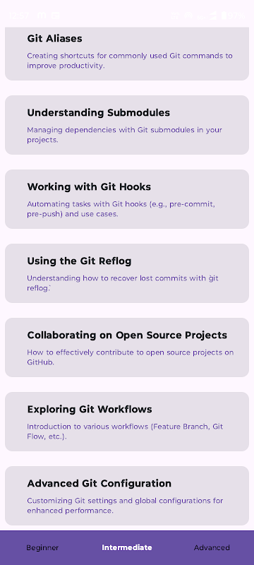 Git Guru là ứng dụng tối ưu để tìm hiểu Git và GitHub và trở thành chuyên gia về GitHub. Cho dù bạn mới bắt đầu hay bạn là một nhà phát triển có kinh nghiệm đang trau dồi kỹ năng của mình, Git Guru đều mang đến trải nghiệm học tập toàn diện. Từ các lệnh Git cơ bản đến quy trình làm việc GitHub nâng cao, ứng dụng này đảm bảo rằng bạn thành thạo Git và GitHub theo tốc độ của riêng mình.