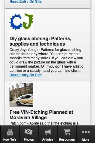 Get everything in one place with the Glass Etching Guide. See how to videos, examples, books and everything else to do with Glass Etching.