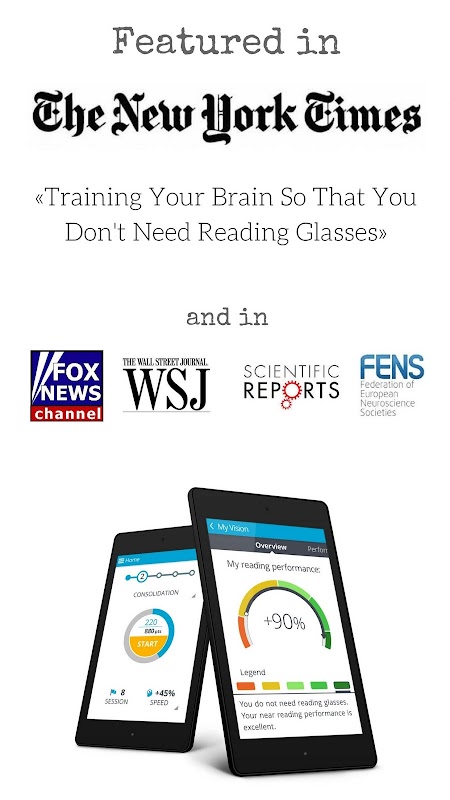 GlassesOff được phát triển bởi một nhóm nghiên cứu hàng đầu về khoa học thần kinh chuyên về các giải pháp tiên phong trong lĩnh vực tầm nhìn của con người. sản phẩm của chúng tôi sử dụng phương pháp cấp bằng sáng chế được dựa trên nhiều năm nghiên cứu khoa học và hỗ trợ trong nhiều tạp chí khoa học hàng đầu. Trong một nghiên cứu gần đây được công bố trên UC Berkeley, CA, trên 90% các môn học, đã có thể đọc tiêu chuẩn kích thước phông chữ báo không đeo kính sau khi hoàn thành chương trình GlassesOff.