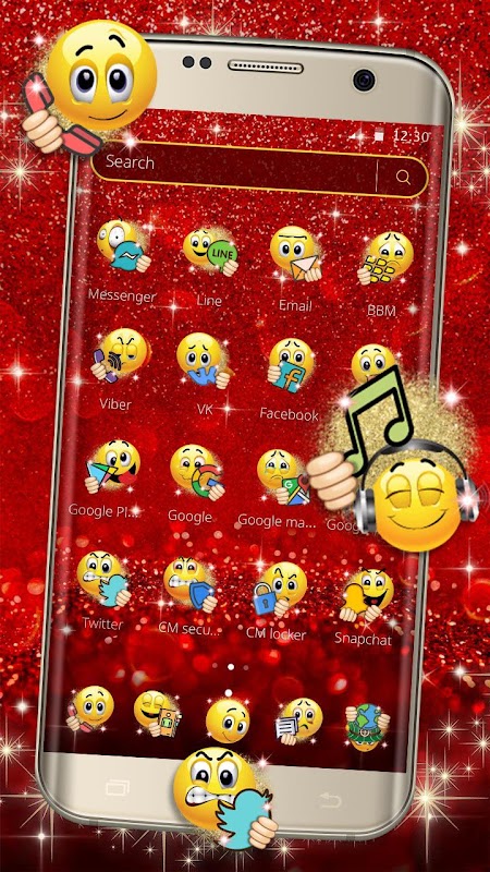 Glitter Emoji Theme sẽ là một trong những ấn tượng ấn tượng mạnh mẽ Smiley Shine launcher sẽ mang lại cho màn hình điện thoại của bạn một thương hiệu posh mới nhìn.