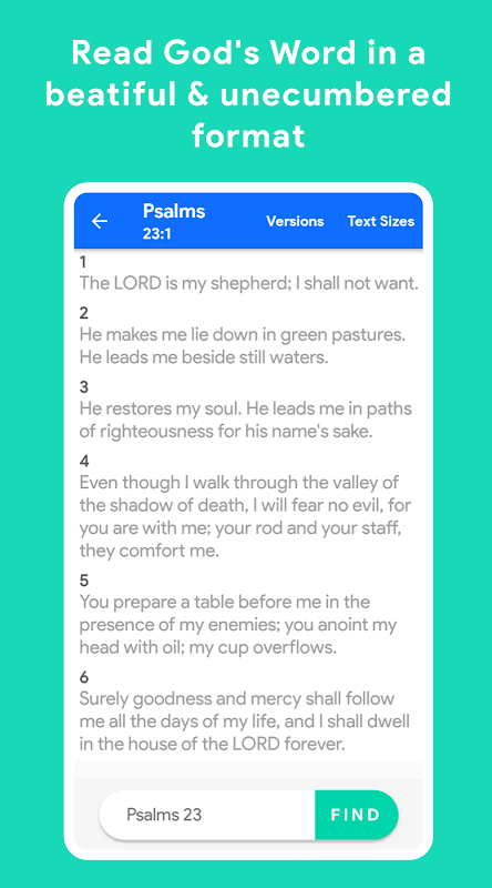 Ứng dụng Kinh thánh Go đi kèm với một số phiên bản Kinh thánh phổ biến nhất, như NIV (Phiên bản quốc tế mới) và KJV (Phiên bản King James). Ứng dụng này cũng cho phép bạn tải xuống nhiều phiên bản hơn. Làm thế nào mà lựa chọn?