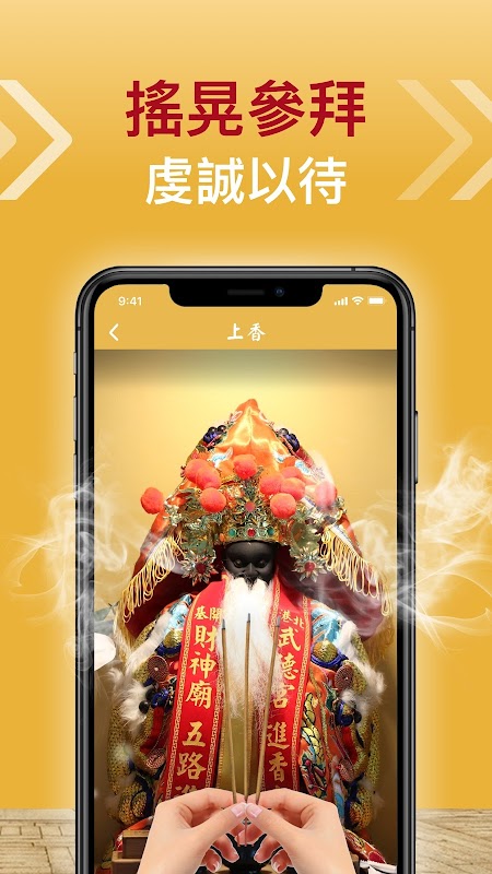 Cách cầu may rất đơn giản! Chỉ cần cài đặt ứng dụng Võ thần giàu có miễn phí, vào trang hương, lắc điện thoại lên xuống là có thể hoàn thành lễ dâng hương! Dù bạn đang ở nhà, ở công ty hay đang đi du lịch, bạn đều có thể viếng thăm Thần Tài mỗi ngày.