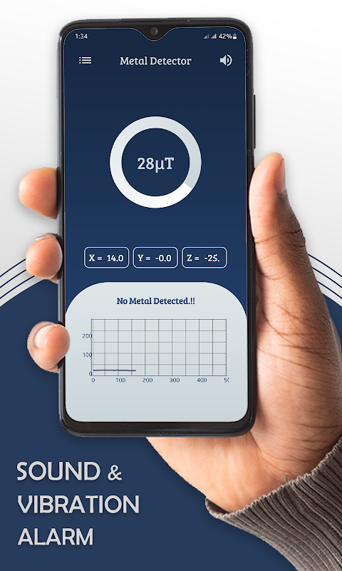 để phát hiện các vật kim loại trong môi trường xung quanh. Ứng dụng máy dò kim loại vàng 2023 cung cấp giá trị phát hiện theo thời gian thực cho người dùng