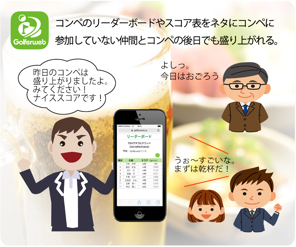 ゴルフ場で使いたい基本機能を搭載!リーダーボード機能で、いつものコンペをより楽しく!ランキングを見ながらわいわい盛り上がりましょう♪