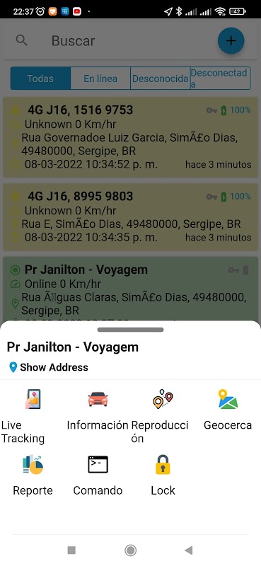 Ứng dụng mặc định được đặt để sử dụng dịch vụ demo Gpstracking miễn phí. Để quản lý các thiết bị, bạn cần đăng ký người dùng tại https://gpstracking.ar/.