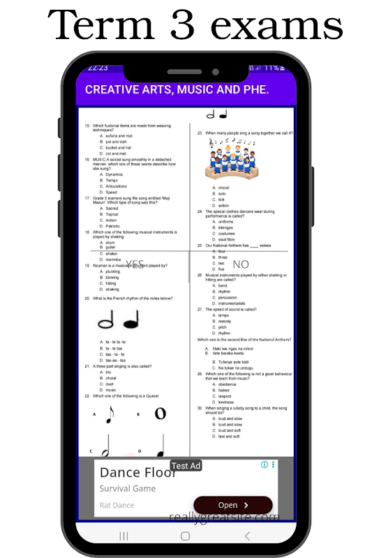 Phiên bản cũ của Grade 5 Arts, Music, PHE Exams
