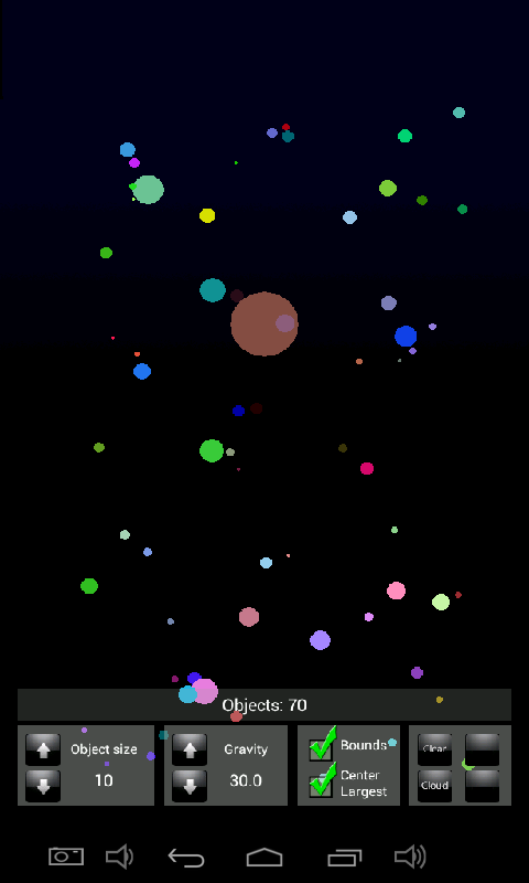 Đặt các vật thể mới ở bất kỳ đâu trên màn hình. Trượt để cung cấp cho chúng một vectơ (đường bay). Tất cả các vật thể tương tác với tất cả các vật thể khác. Chỉ cần luyện tập một chút, bạn có thể tạo ra hệ mặt trời ổn định của riêng mình.