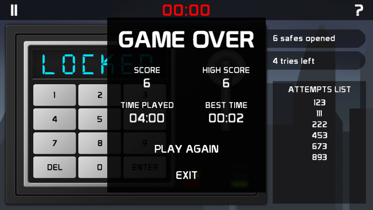 Thời gian xét xử: một thách thức thực sự, nơi bạn sẽ phải mở nhiều két như bạn có thể trong 3 phút. Tất cả các điểm số được lưu trữ, thời gian tốt nhất bao gồm.