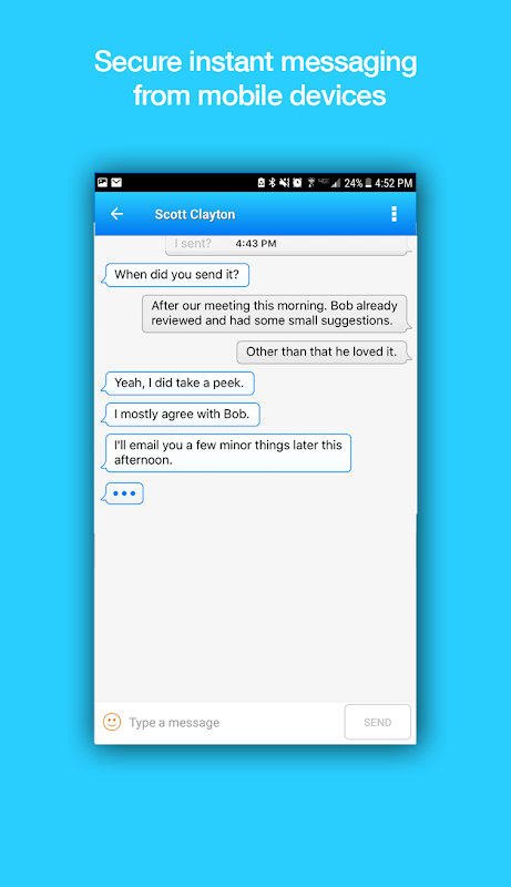 An toàn, nhanh chóng, an toàn - SSL thông điệp được mã hóa ngay lập tức được chuyển đến thiết bị bằng cách an toàn trên hệ thống tiền đề messenger của riêng bạn, và lịch sử trò chuyện có thể được quản lý bởi các quản trị viên và người dùng.