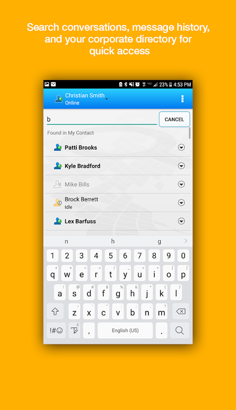 Bằng cách kết nối ứng dụng di động này đến 18 hệ thống messenger hiện tại của bạn, Messenger sử dụng dữ liệu di động hiện tại của bạn hoặc wifi kết nối ngay lập tức và an toàn giao tiếp với đồng nghiệp - không có vấn đề mà họ đang có!