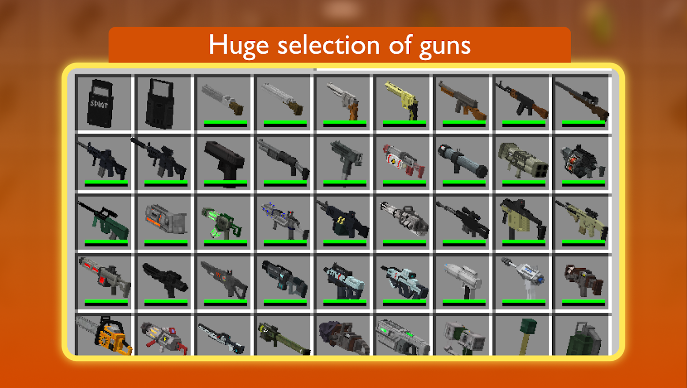 Bạn muốn cải thiện khả năng sống sót của chính mình và thêm một số yếu tố amp vào ứng dụng vani tiêu chuẩn từ Mojang? Guns Mod cho Minecraft PE chính xác là những gì bạn cần! Chỉ một bậc thầy thực sự của các trận chiến, chẳng hạn như lính bắn tỉa, mới có thể sử dụng thiết bị chiến thuật trong Minecraft, nhưng với Minecraft Mod này, việc lấp đầy Vũ khí và Súng sẽ hoàn toàn có sẵn cho mọi người dùng trò chơi.