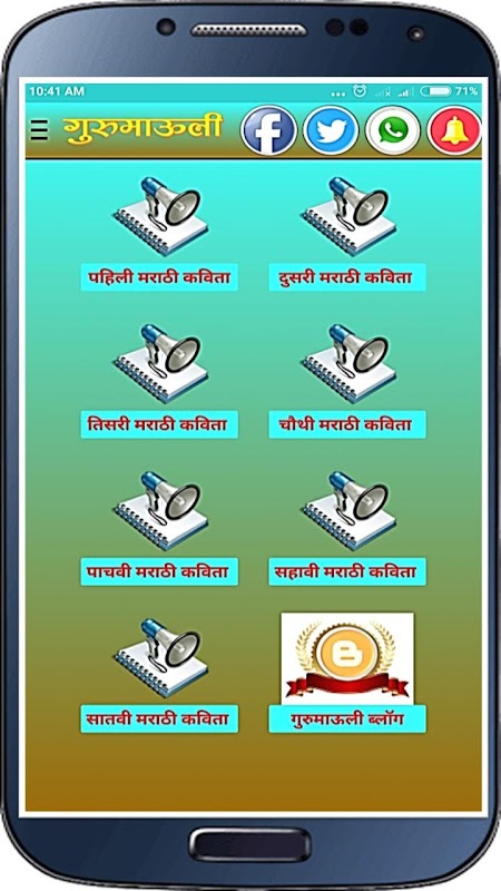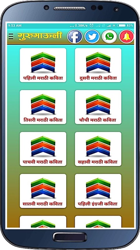 Có những bài thơ tiếng Marathi và tiếng Anh từ lớp 1 đến lớp VII.