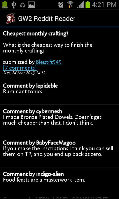 Keep up to date with the latest news and discussions on Guild Wars 2 Reddit with the GW2 Reddit Reader - pulling straight from Reddit to give you the up-to-date news quick and easy.