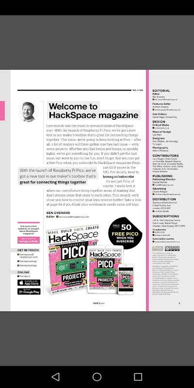 Ứng dụng của tạp chí HackSpace cho phép bạn thưởng thức tạp chí trên các thiết bị yêu thích của mình một cách nhanh chóng và thuận tiện, đồng thời tận dụng các tính năng như liên kết URL trực tiếp, trang bìa / nội dung trực tiếp liên kết đến các bài báo và cải thiện trải nghiệm hiển thị. Đó cũng là cách tốt nhất để hỗ trợ cả việc xuất bản HackSpace đang diễn ra và sứ mệnh của chúng tôi là truyền bá kiến thức giúp nhiều người hơn xây dựng các dự án của riêng họ.